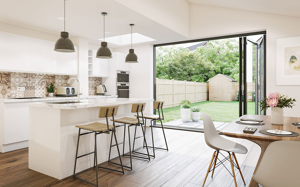 Bi-folds create a wide opening that helps kitchens, dining spaces and extensions flow naturally into the garden during warmer months.